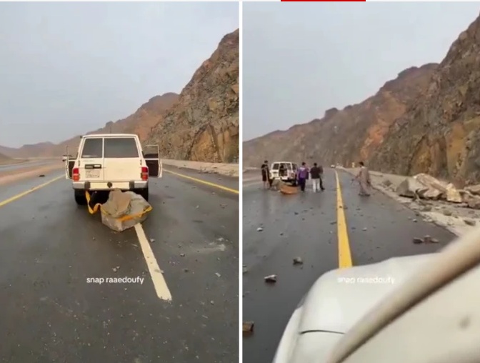 ويُرجَّح أن الصخرة سقطت من أعلى أحد الجبال المحاذية للطريق قبل أن تستقر في منتصفه، مما كان قد يتسبب في وقوع حوادث خطيرة لمرتادي الطريق.