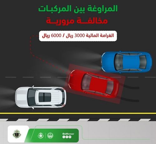 أوضحت الإدارة العامة للمرور أن المراوغة بين المركبات أثناء القيادة تُعد مخالفة مرورية جسيمة، مشيرةً إلى أن الغرامة المالية المقررة لها تتراوح بين 3 آلاف و6 آلاف ريال.