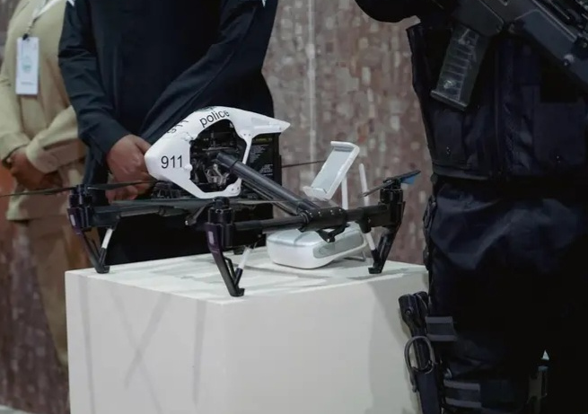 يستعرض الأمن العام لزوّار جناح وزارة الداخلية بمؤتمر ومعرض الحج، طائرة دون طيار (درون)؛ لرصد المخالفين لأنظمة الحج، وقياس الكثافة، بما يحقق انسيابية حركة الحشود في المشاعر المقدسة.